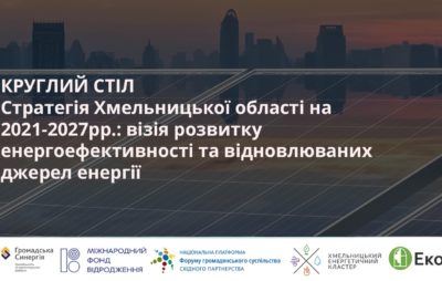 Розглянути це питання запрошуємо вас 29 травня на круглому столі “Стратегія Хмельницької області на 2021-2027 рр.: візія розвитку енергоефективності та відновлюваних джерел енергії”. Захід організовує Хмельницький енергетичний кластер за фінансової підтримки Європейського Союзу та Міжнародного фонду «Відродження» у рамках проекту «Громадська синергія».